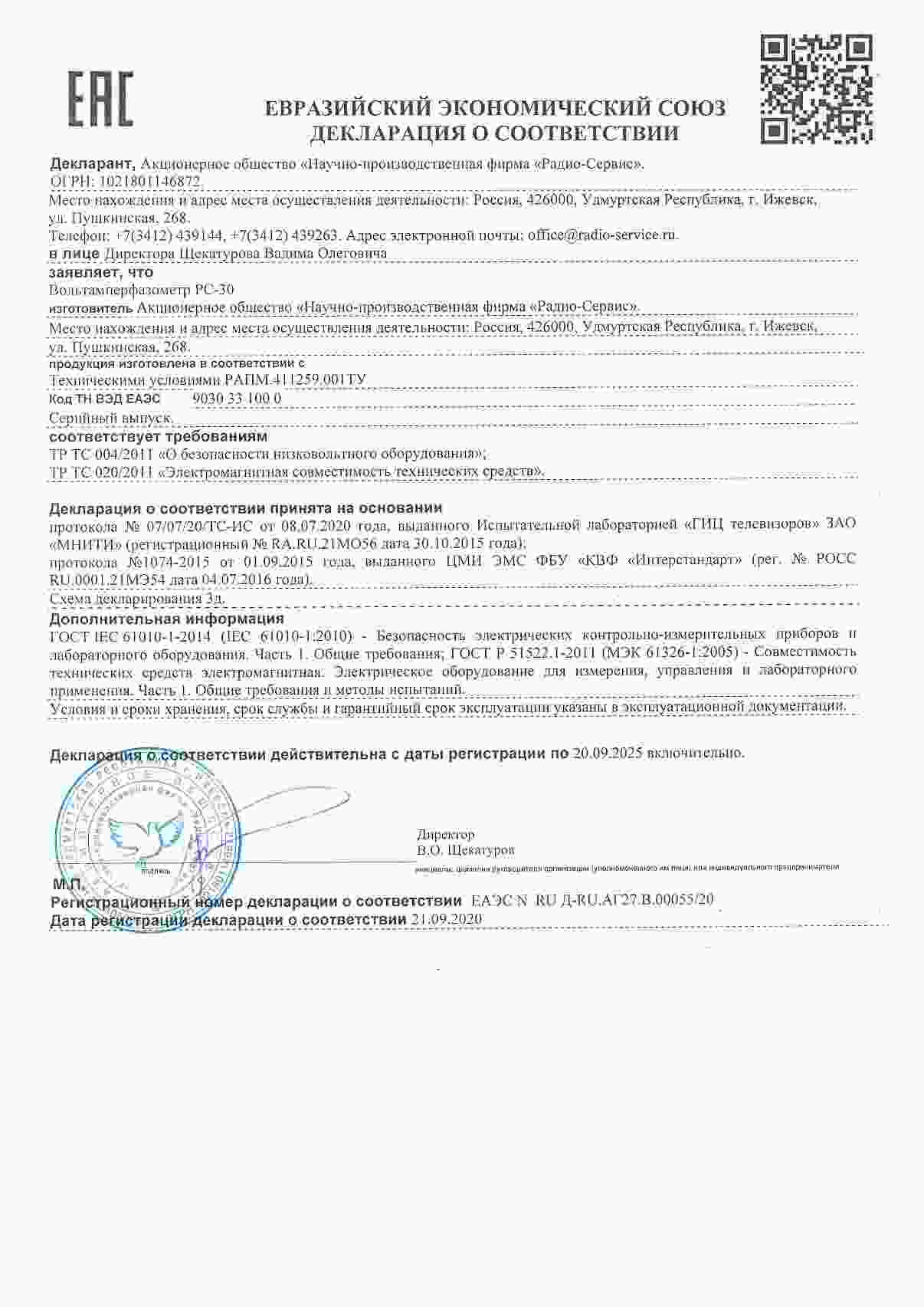 - Вольтамперфазометр Радио-Сервис РС-30 с клещами КТИР-30 (до 40 А)